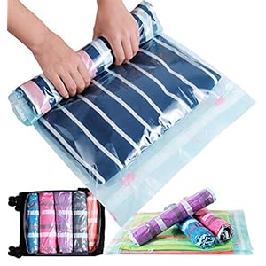 Bagail 8/10 Pack Compression Packing Cubes – 4 Air Out Design Roll-Up Compression Bags for Travel
